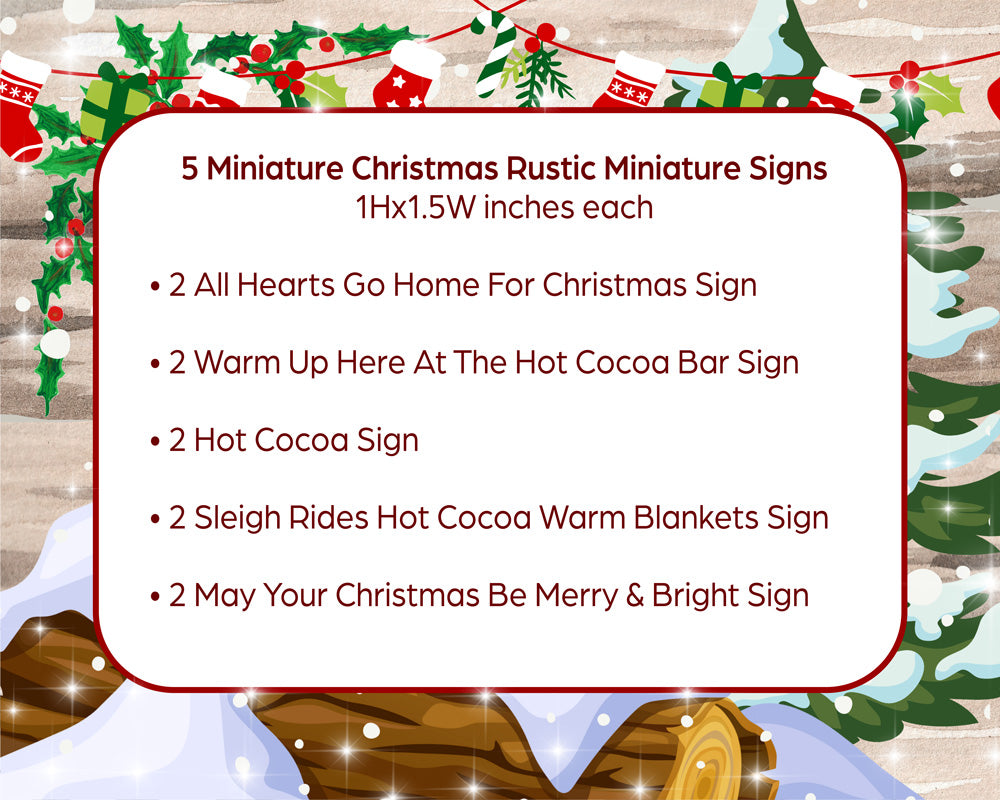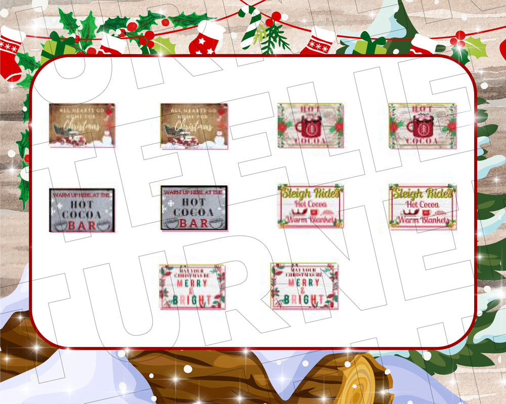 Your sweet fairies will love to have these adorable signs this Christmas-just in time for hot cocoa on a cold winter's day. These are perfect to decorate your Fairy Garden and or Dollhouse for the holidays!This absolutely beautiful Printable Miniature design is perfect for your dollhouses, your fairy garden, or your Christmas display!