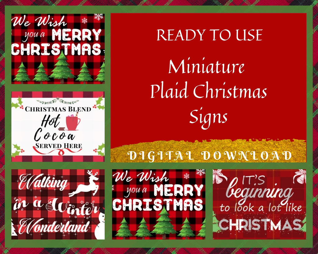 Spread some festive vibes with this NEW! Miniature Christmas Plaid Digital Sign! Perfect for your dollhouses, fairy gardens, or Christmas displays, these tiny signs will add a charmingly touch to any decoration scene. A must-have for miniature lovers everywhere!