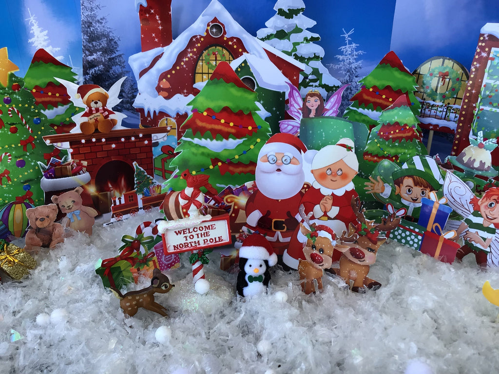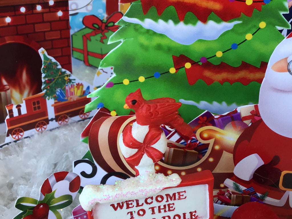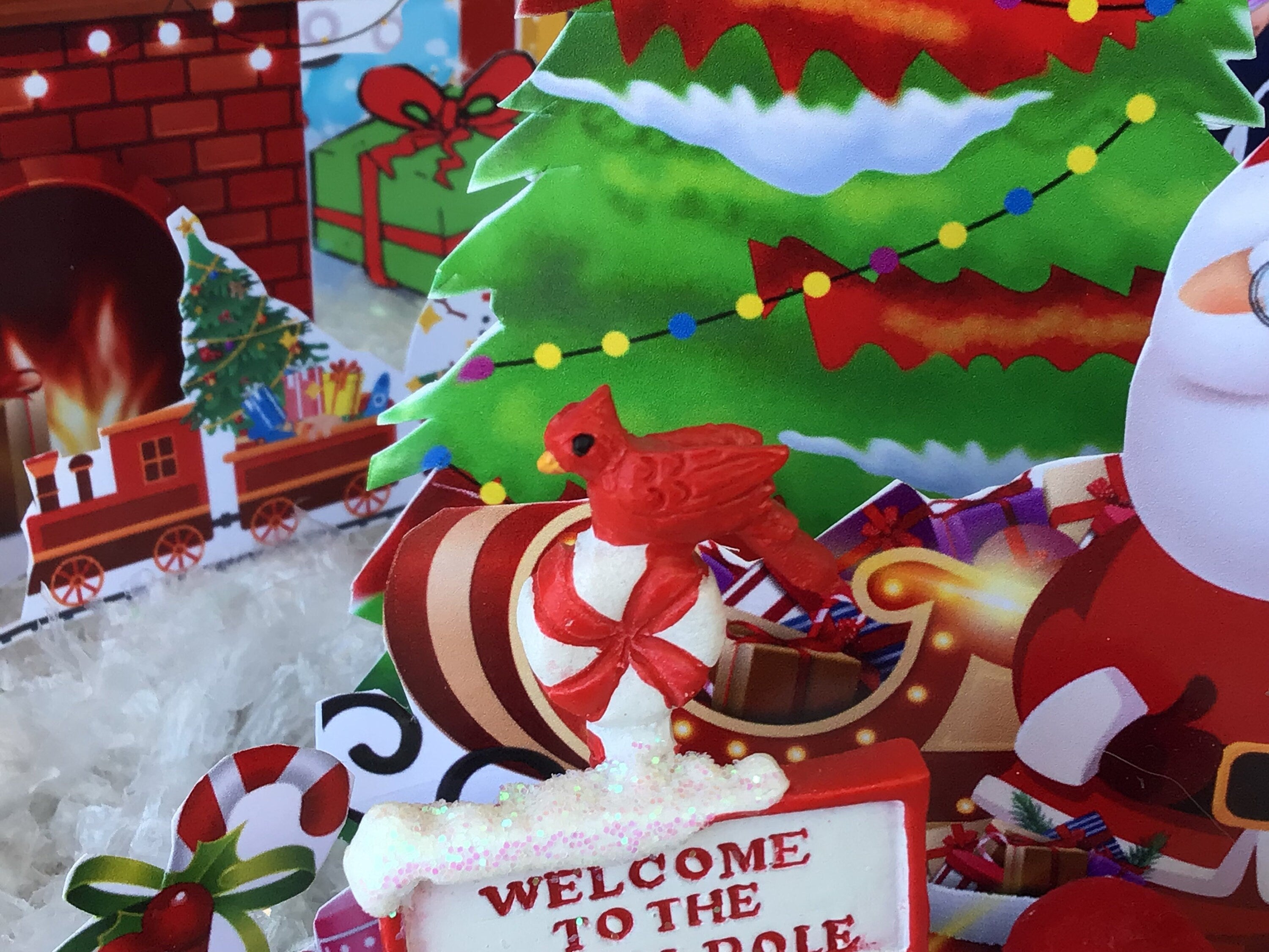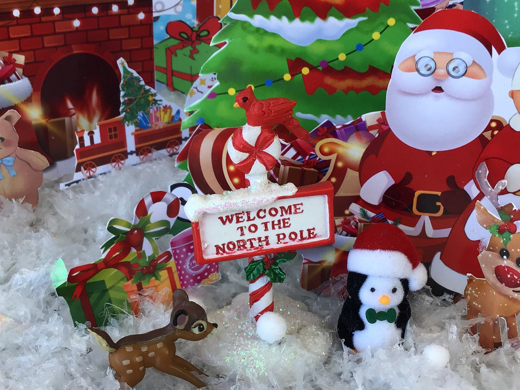 * A Welcome to the North Pole Sign with a stand and snow on top