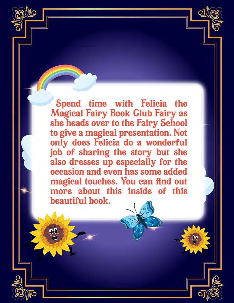 Hi everyone, I'm Felicia the Magical Fairy Book Club Fairy and I am so pleased that I got the chance to go to the Fairy School on the first day of school. I'm the ambassador for Teelie Turner's Magical Fairy Book Club and to celebrate my trip to the school, Teelie wrote a new book about me. I've already read it and have presented it to a wonderful group of fairy children. Now it's your turn to read and share it with your loved ones.