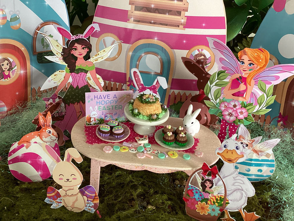 (The Table and miniature food, dishes, and Easter scatter are not included in this offer. The offer is for the digital Instant Fairy Garden only)