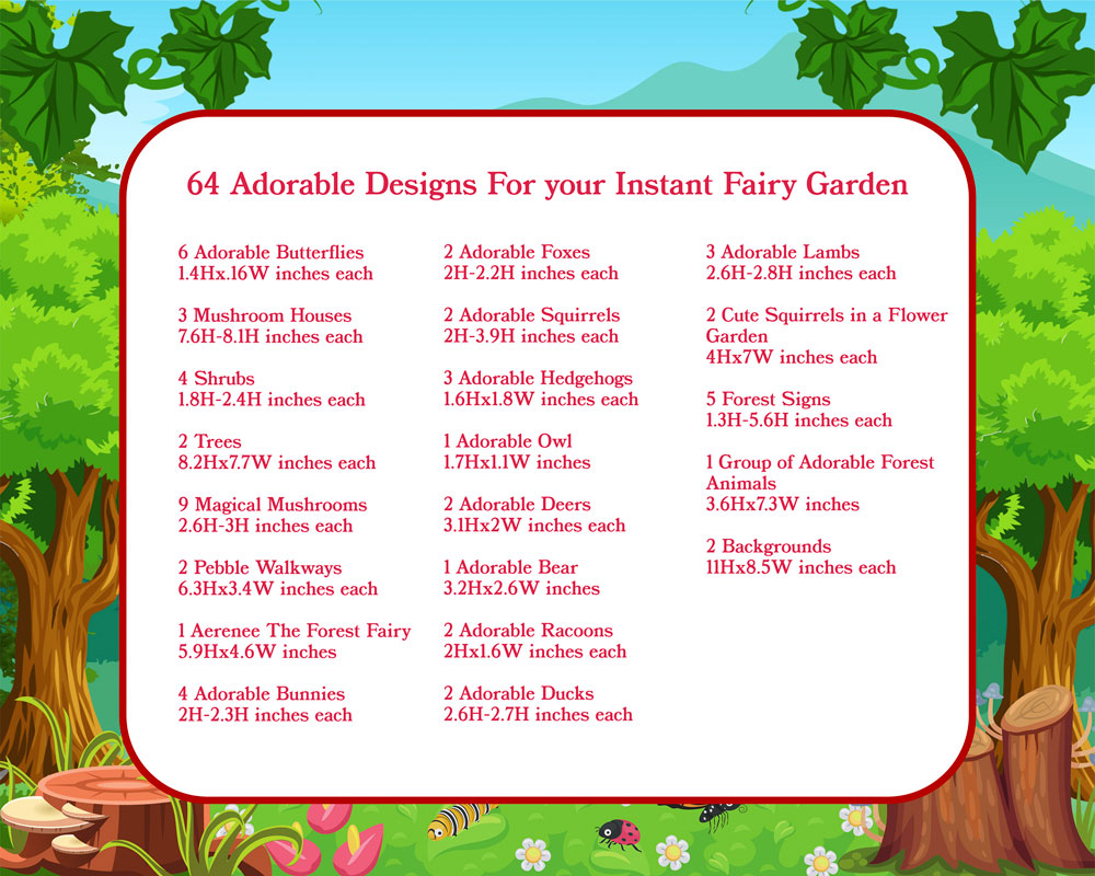 Introducing the Woodland Forest Instant Fairy Garden, a digital download that lets you bring the magic of fairies indoors year-round! This beautiful garden features original artwork and comes with 64 items to decorate your own personal fairy oasis. Just print out the PDF, cut it out, and let your imagination run wild. Whether you're a seasoned fairy book lover or simply love the magic of these little creatures, this garden is sure to delight. Plus, additional miniatures are available for purchase from our Etsy store, so you can add even more pizzazz to your garden. So what are you waiting for? Click the "Buy Now" button and start creating some magic of your own!