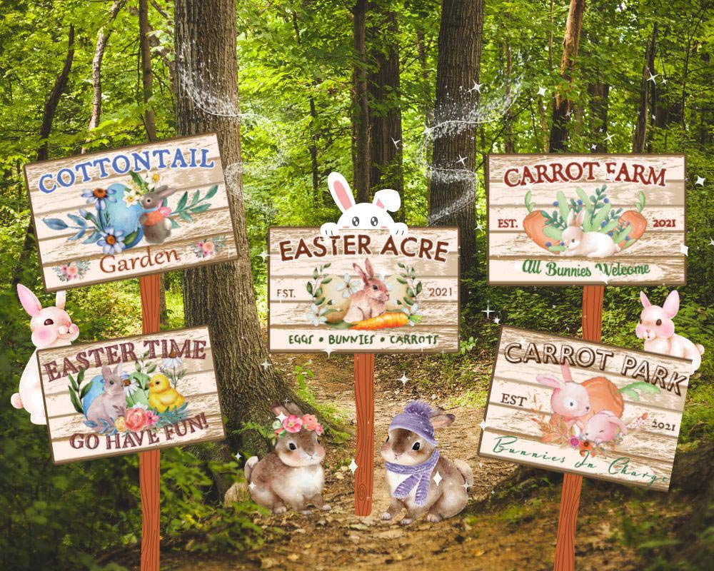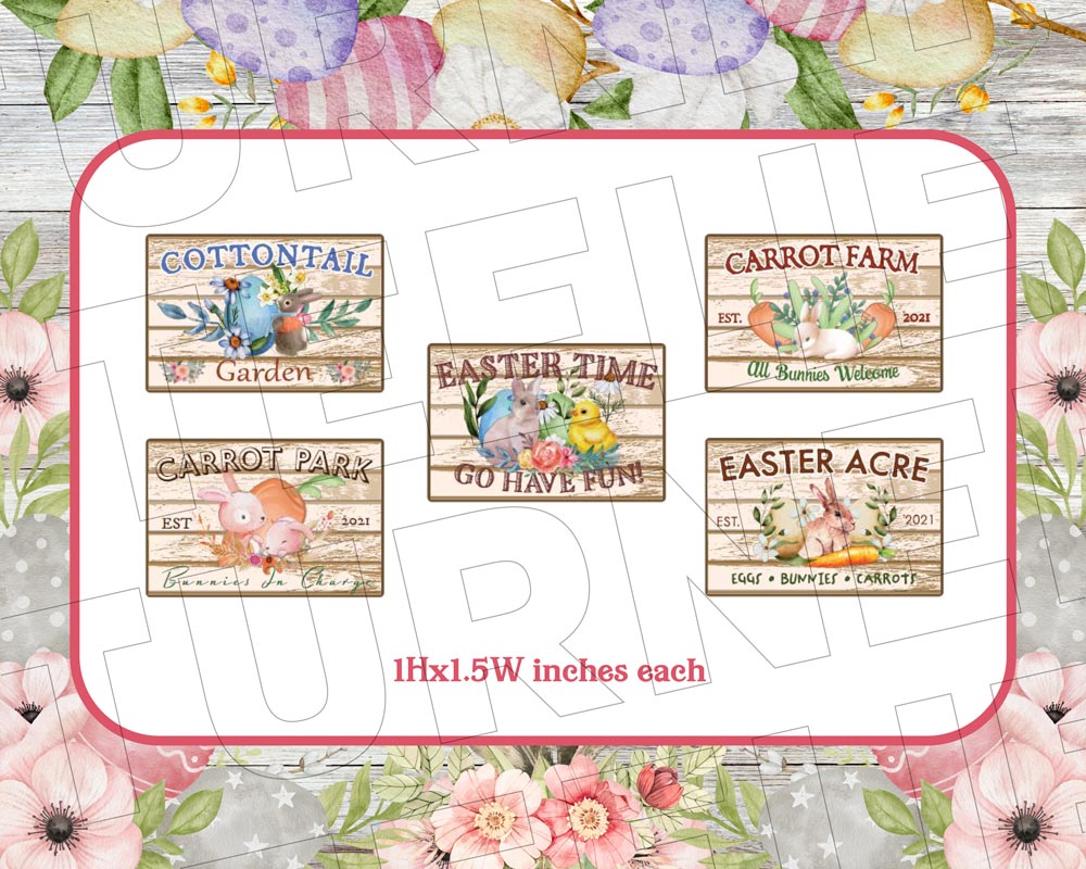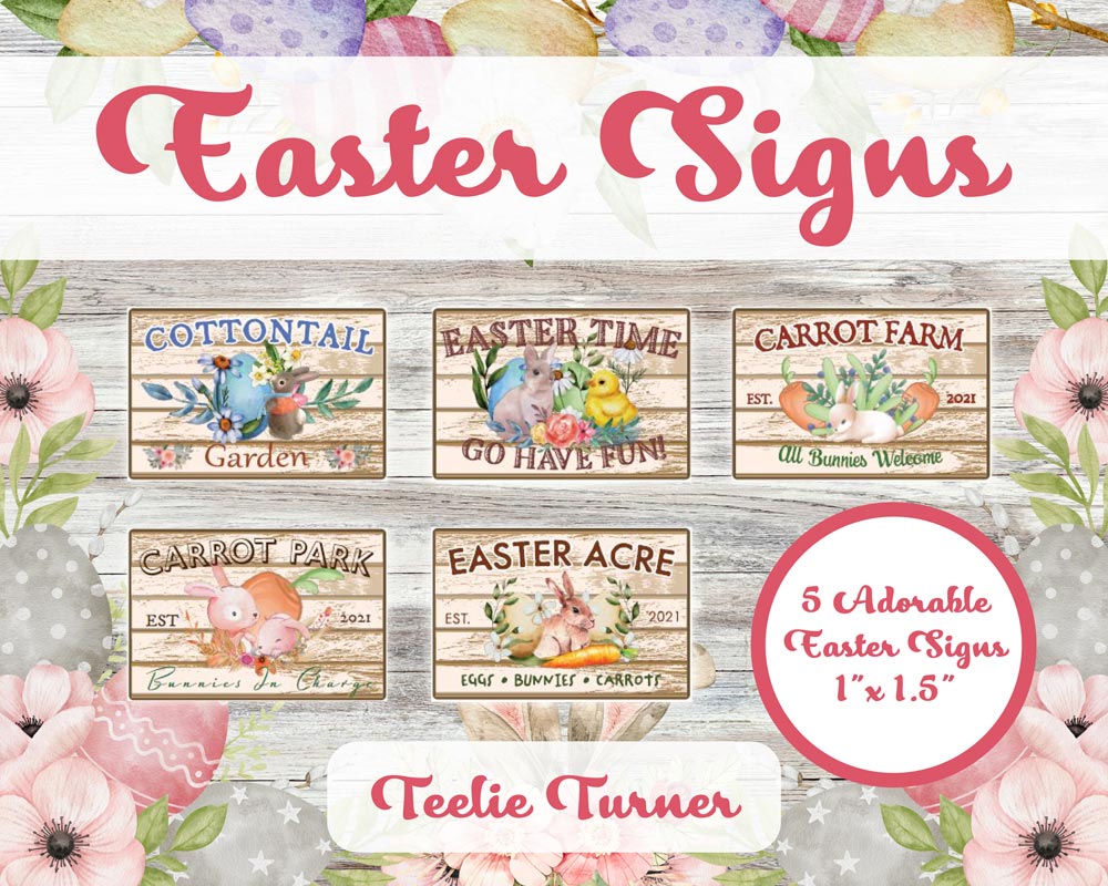 5 Adorable Hoppy Wooden Look Easter Miniature Signs