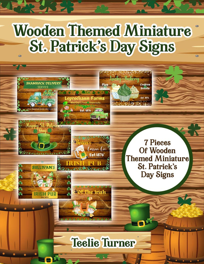Greet your fairies and other wee folk with these delightful miniature signs for St. Patrick's Day! Decorate your dollhouse, fairy garden and any miniature scenes for a festive holiday touch with these 7 digital downloadable designs of Wooden Themed Miniature St. Patrick's Day Signs. Enjoy the sweetest of wishes, the luckiest smiles and some charming designs that will become the highlight of your parade! For an extra dose of magic and some lucky charm, invite the wee folk to have a visit on St. Paddy's day while they indulge in some irresistible treats. Accessorize all those little nooks and crannies with cute St. Patrick inspired delights today!