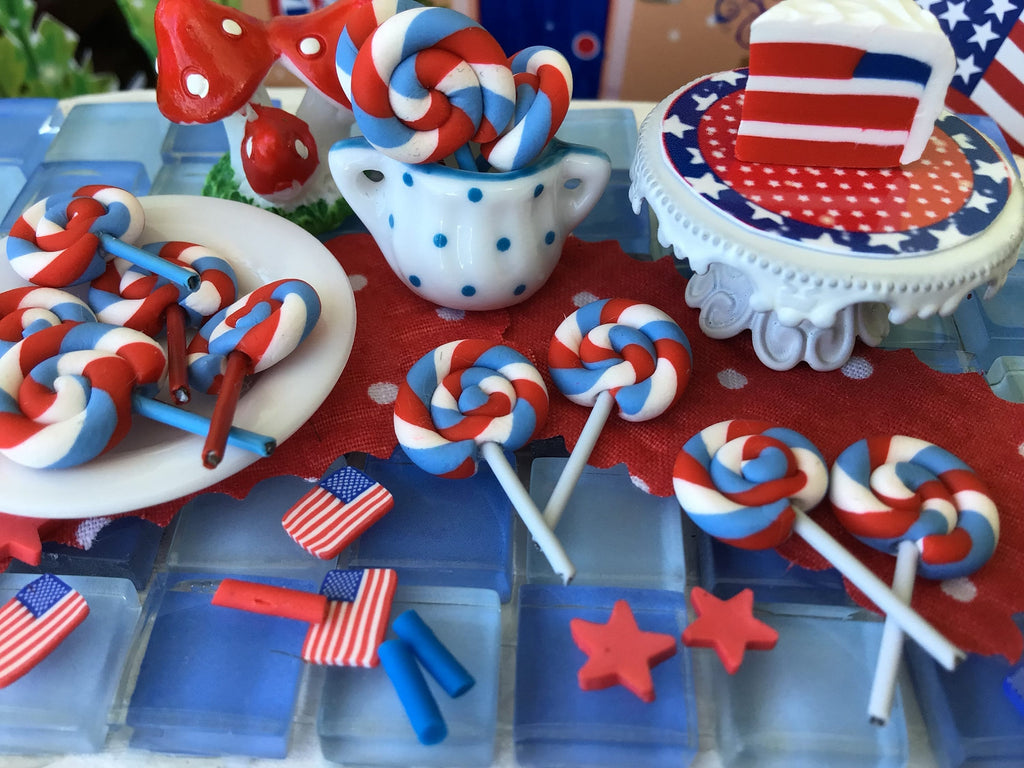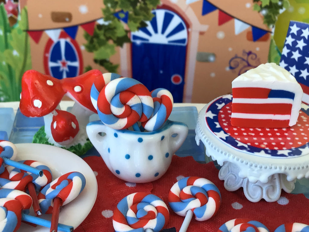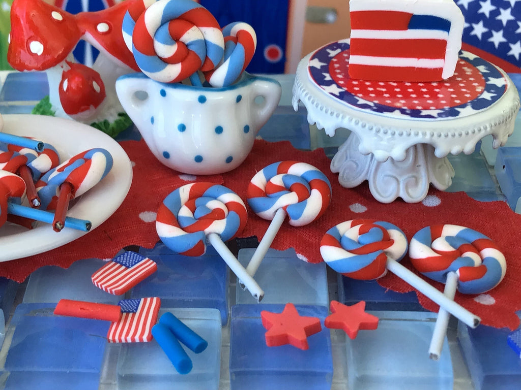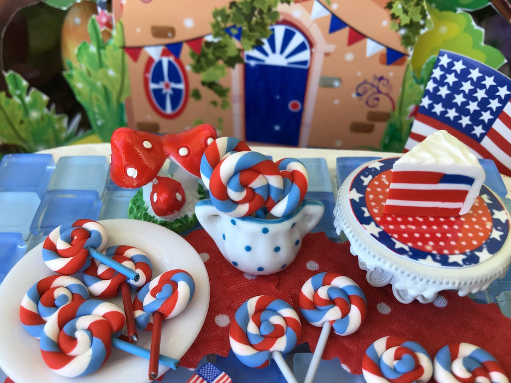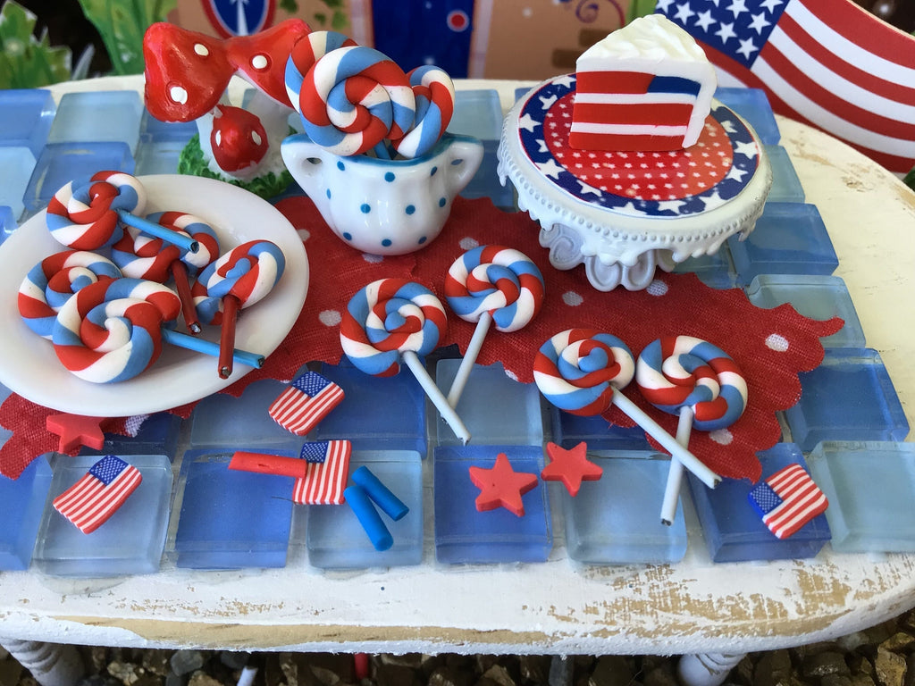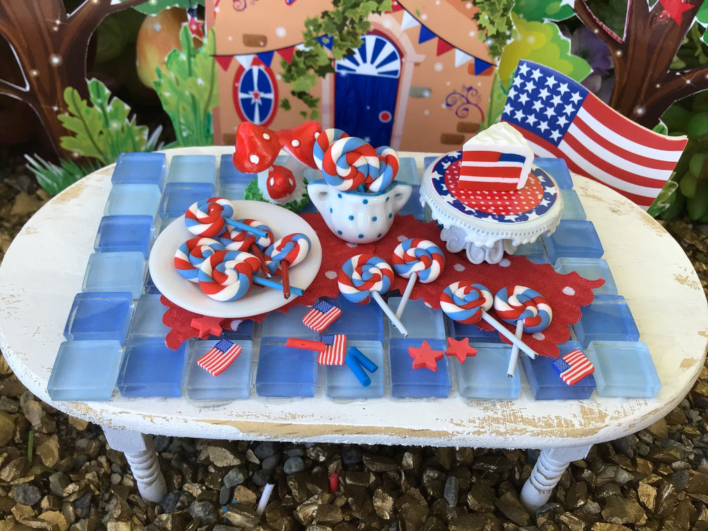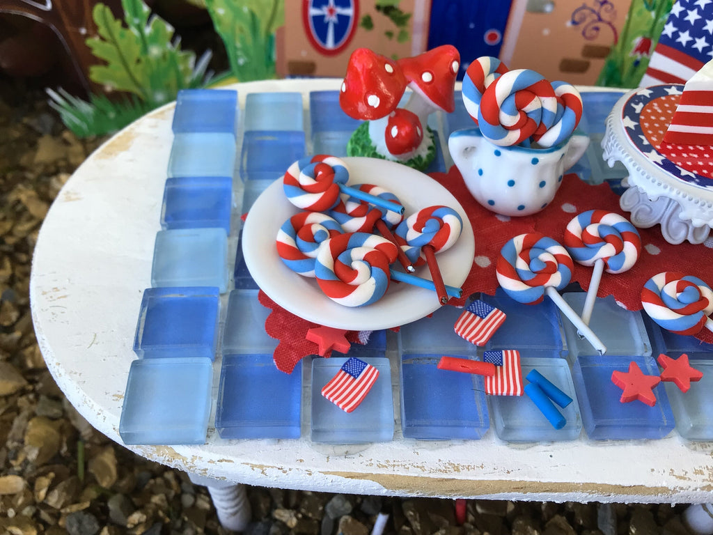 Make your 4th of July fairy garden celebration festive with these exclusive patriotic lollipops! Surely a great addition to your awesome 4th of July themed miniature dollhouse or fairy garden.