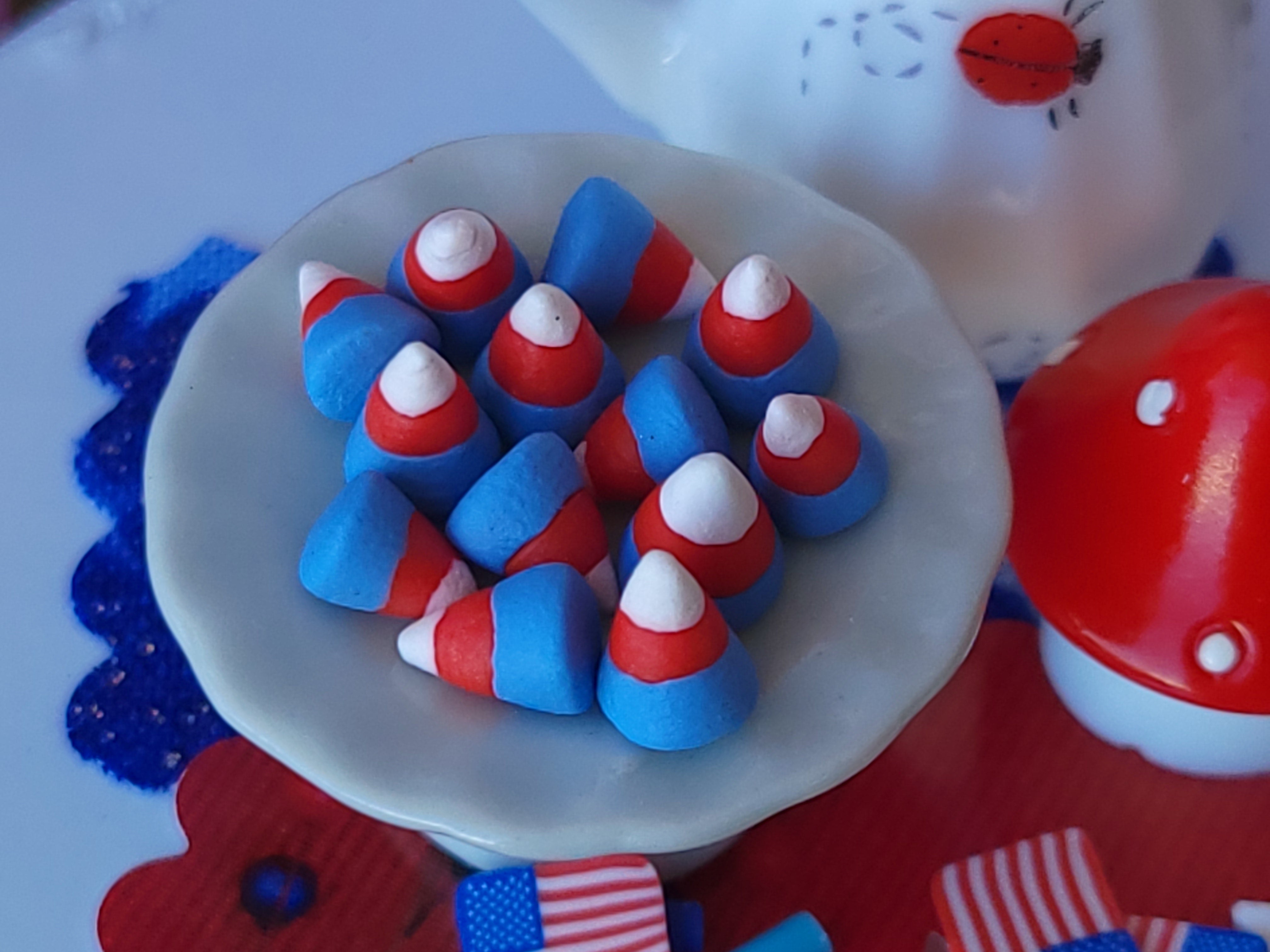 * A yummy piece of Red, White, and Blue Candy Corn for your dollhouse family or your sweet fairy 1:12 size