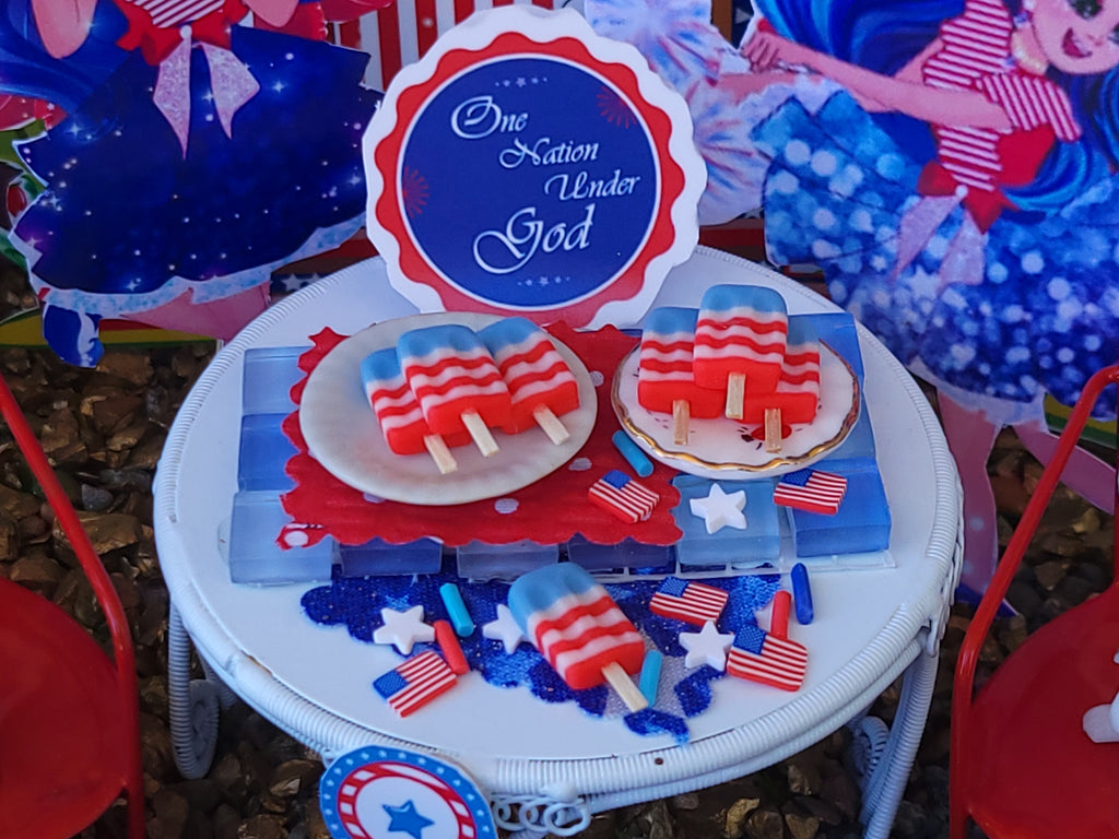 Introducing Amazing Red, White, and Blue Wavy Patriotic Popsicles: the perfect 1:12 accessory for your fairy garden or dollhouse! As soon as these little popsicles arrive, you and your fairies are sure to be star-spangled smiling! Each popsicle is vibrantly colored in festive hues of red, white, and blue, as sweetly patriotic as your musical fourth of July celebration. Delightful and colorful, these popsicles will make your fairy garden, dollhouse, or any mini setup look even sweeter. Make a statement with Amazing Red, White, and Blue Patriotic Popsicles and make your fairies proud to be miniature American patriots! ❤️🤍💙