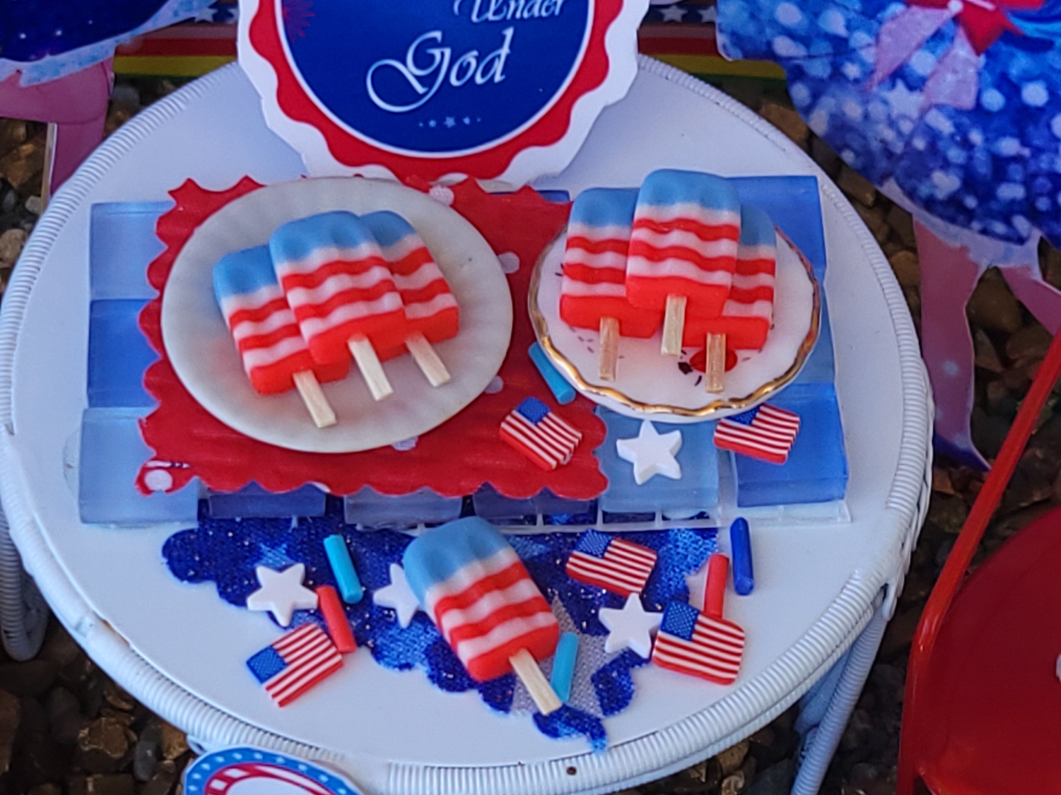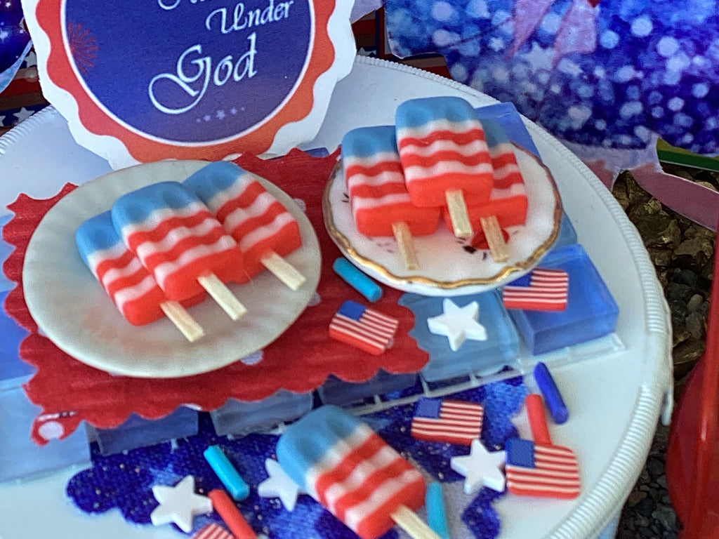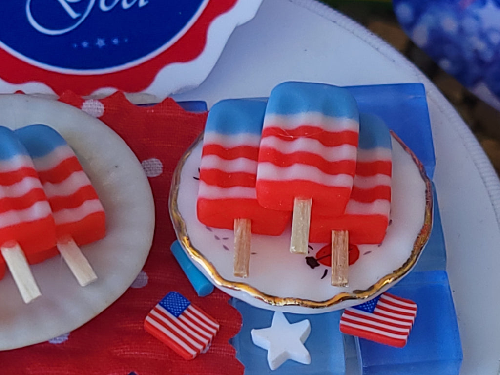 1:12 Wavy Patriotic Popsicles, Fairy Garden, Dollhouse