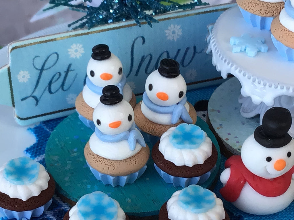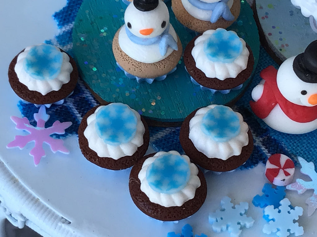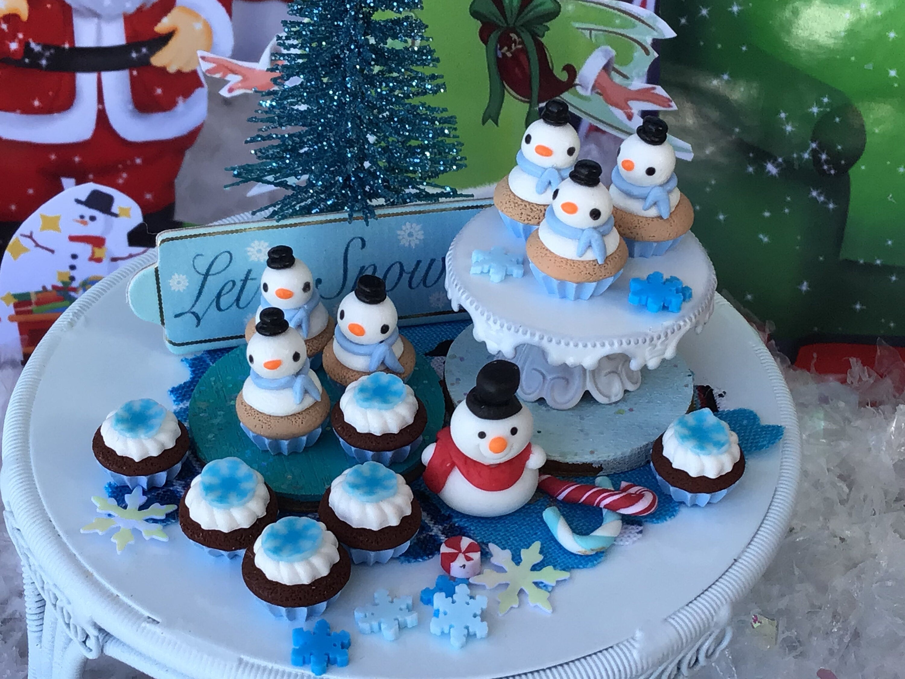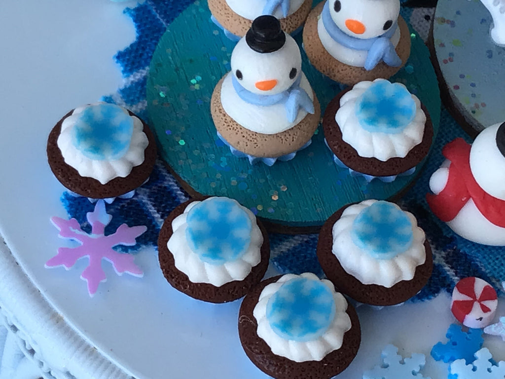 Adorable Christmas Snowman Cupcakes and Blue Snowflake Cupcakes☃🌲❤️💚☃