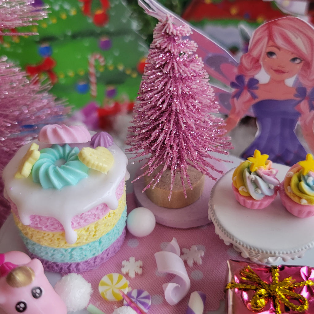 Step into a pastel wonderland with Day 13 of Fairy Lights and Christmas Delights, where everything is delightfully sweet and magical! Picture a whimsical fairy scene centered around a pastel layered cake, adorned with dainty pastel cookies resting on top, and luscious vanilla frosting dripping like enchanted snow.
