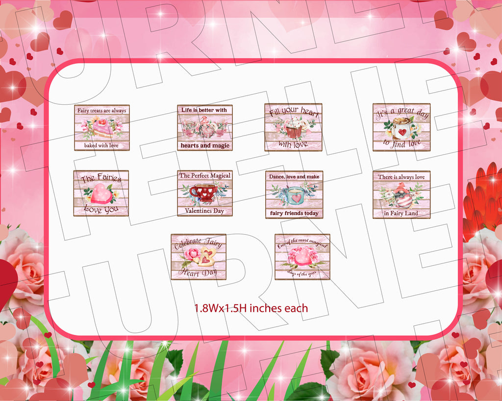 Add a touch of fairy magic to your miniature world with these adorable original designs created by our talented graphic artists! Perfect for fairy gardens, dollhouses, or miniature scenes, these 10 enchanting signs bring love, whimsy, and charm to your Valentine's decor.