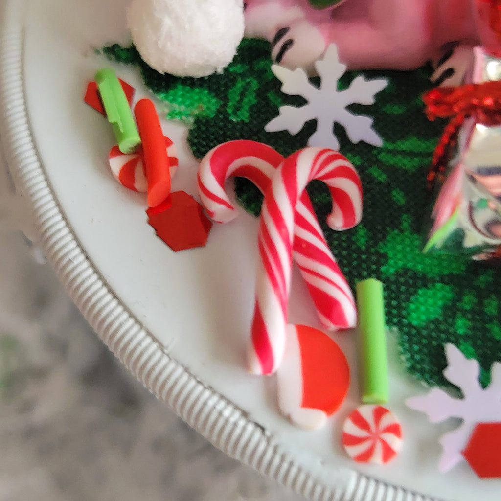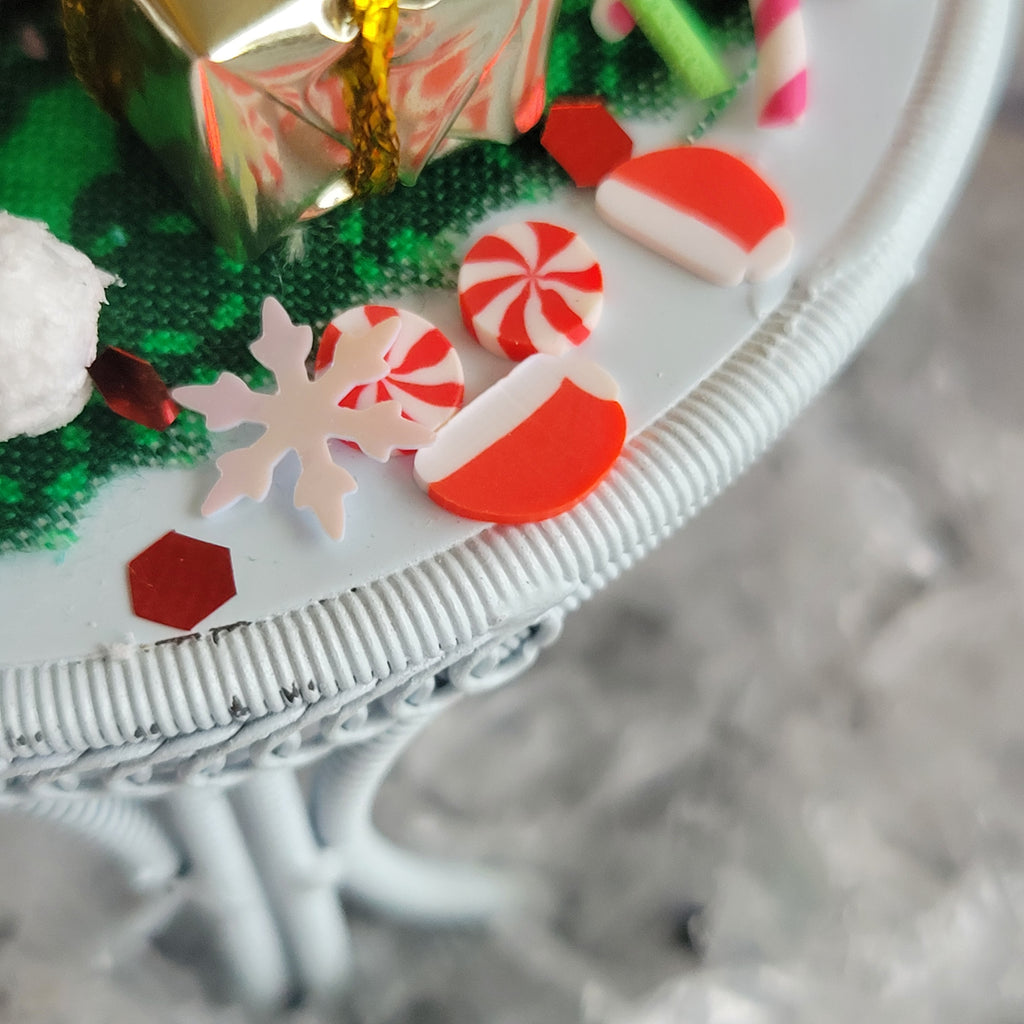 🎄 Sweet Green Christmas Tree: A vibrant and festive tree, 2" tall, adding a dash of holiday charm to the scene.