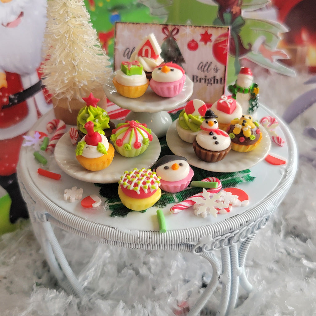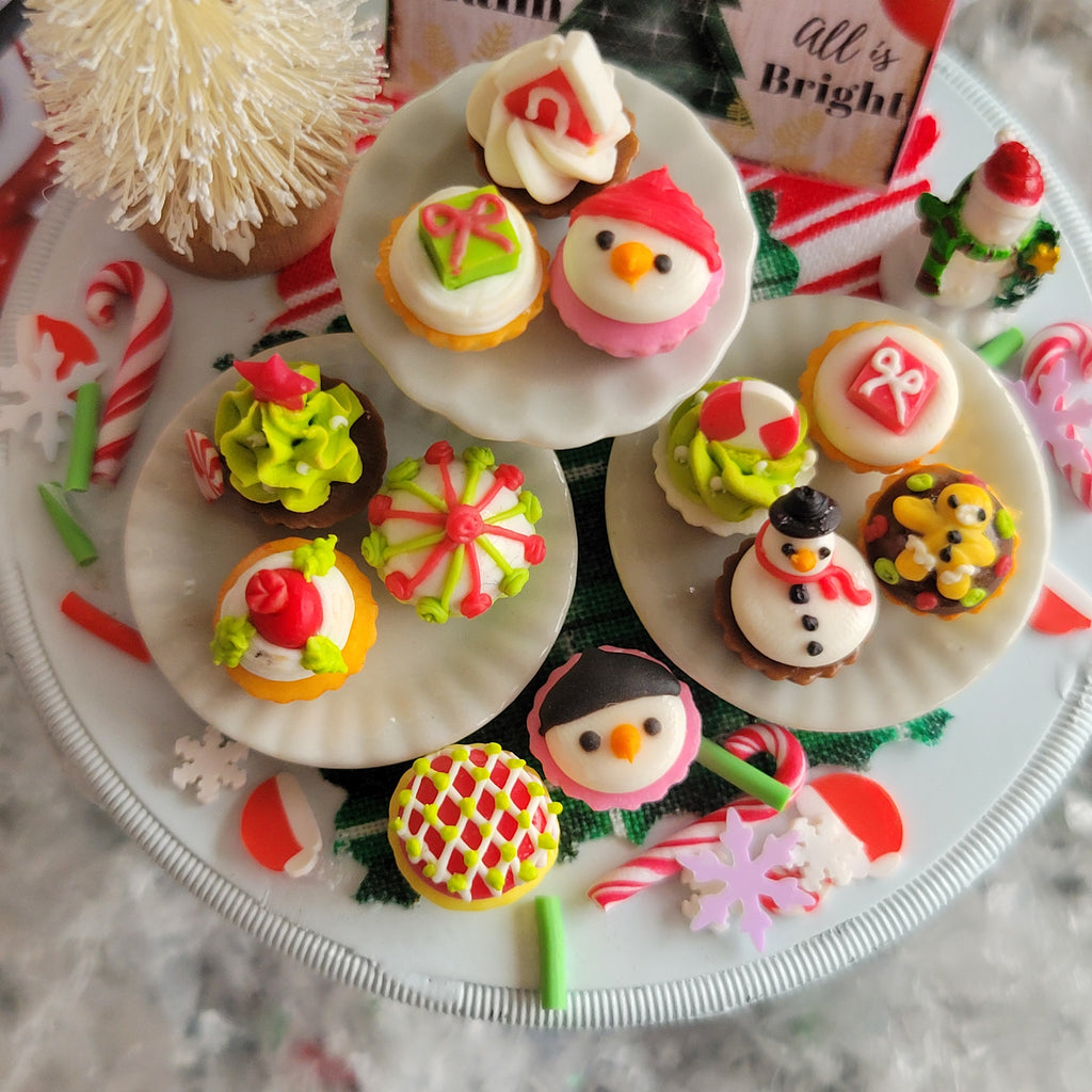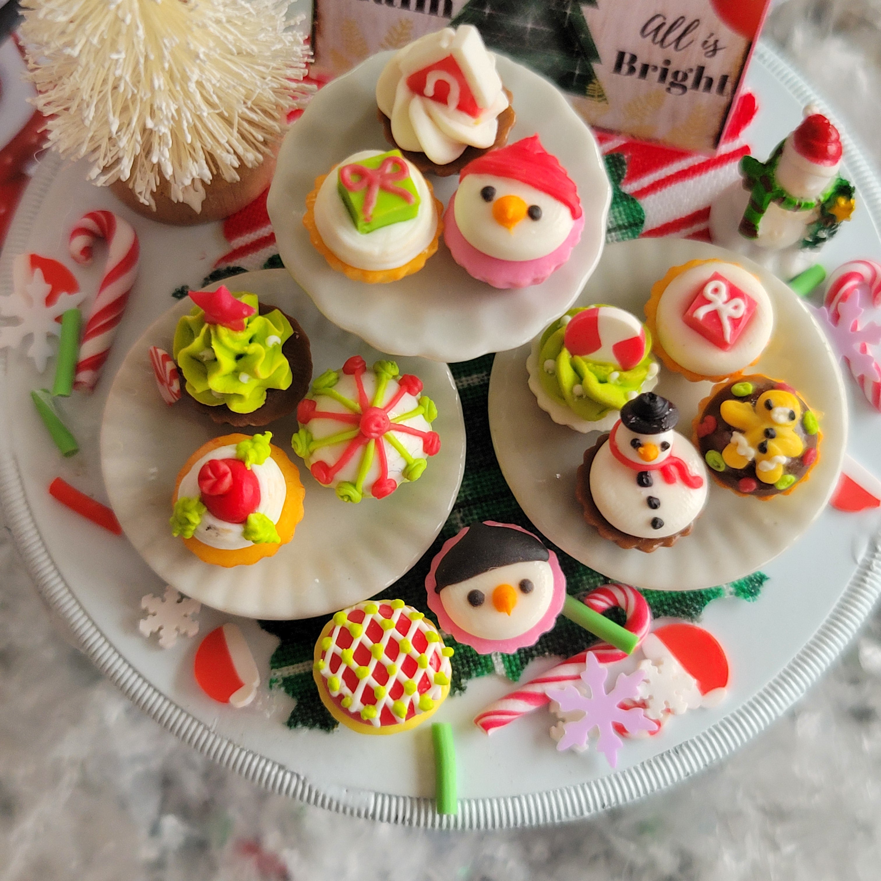 Get ready for a dazzling display of holiday cheer with today’s spectacular assortment of Christmas cupcakes! Each cupcake, crafted in 1:12 scale, is a miniature masterpiece bursting with festive charm: