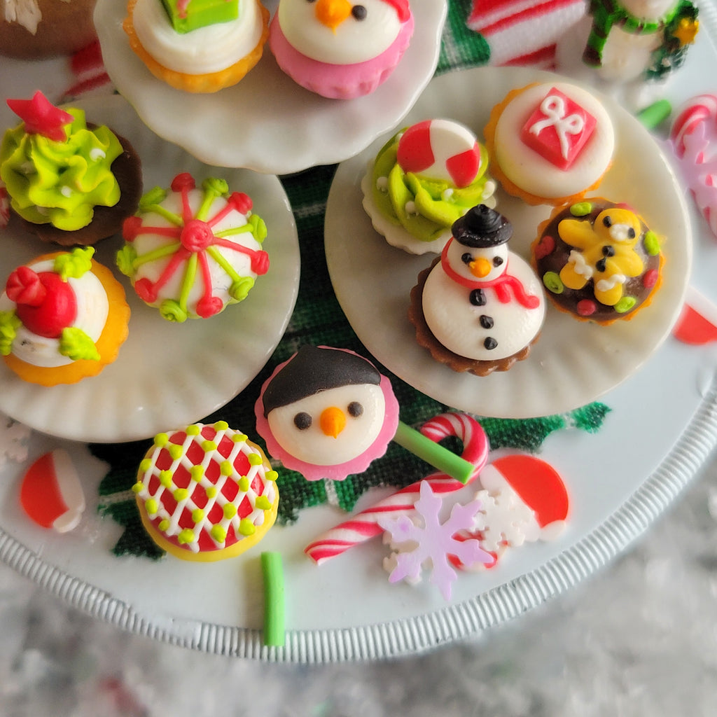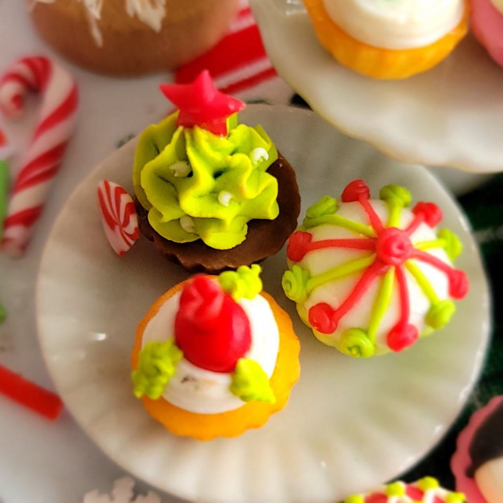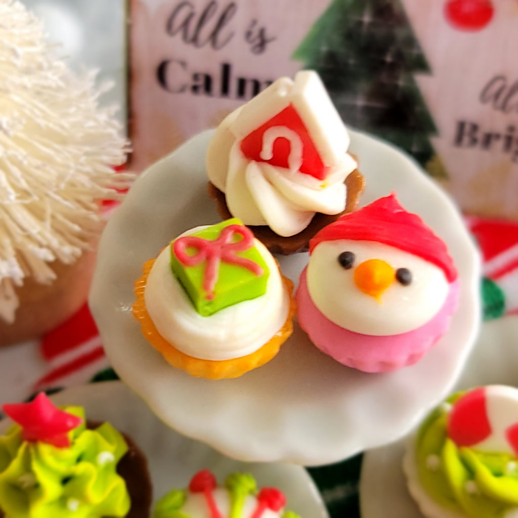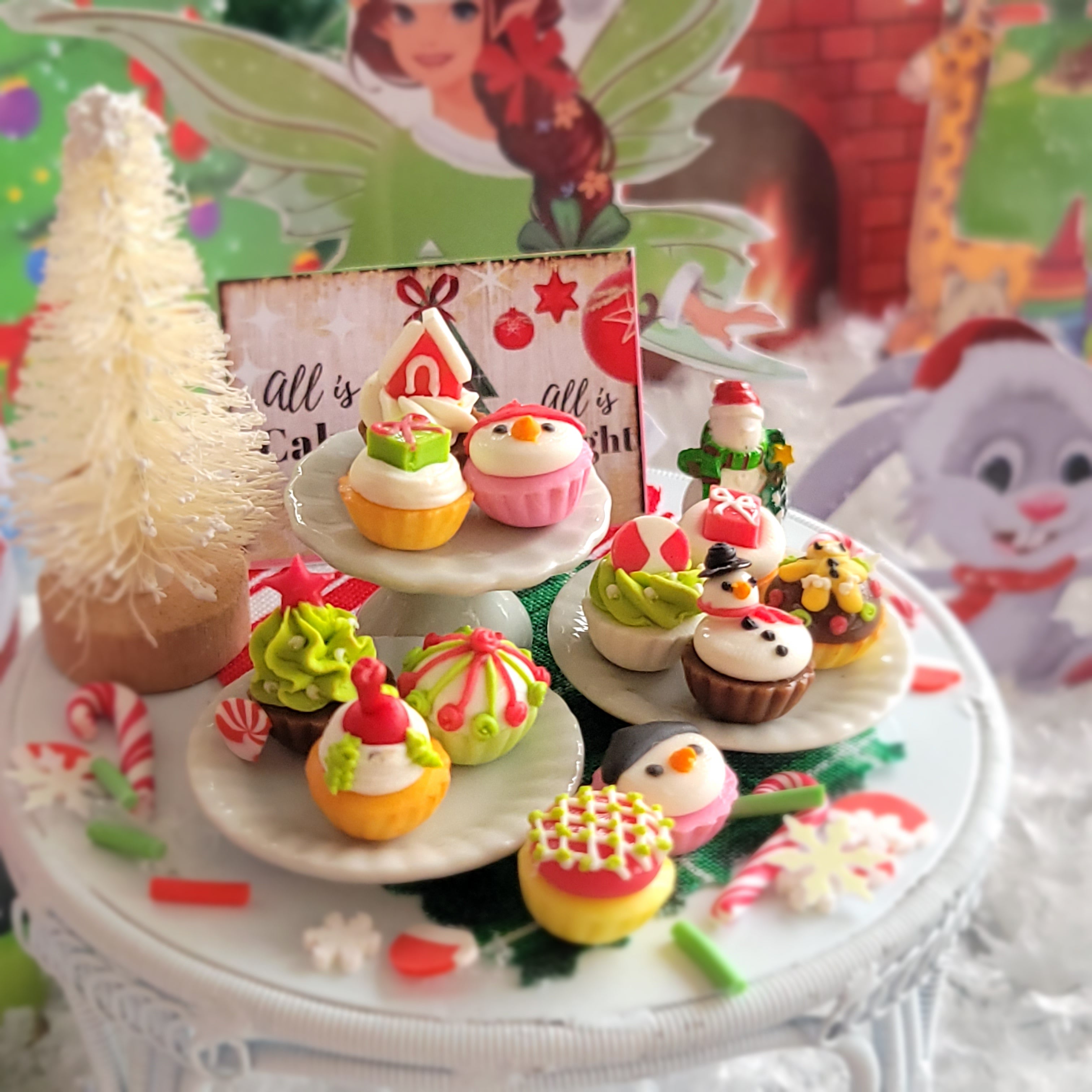 Get ready for a dazzling display of holiday cheer with today’s spectacular assortment of Christmas cupcakes! Each cupcake, crafted in 1:12 scale, is a miniature masterpiece bursting with festive charm: