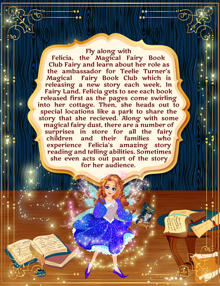 Welcome, I’m Felicia, the Magical Fairy Book Club Fairy. It is my pleasure to welcome you. I’d like you to get comfortable and settle in to hear or read my story. I hope that you have as much fun with it, as I do when I get to read the weekly Magical Fairy Book Club Story to children in Fairy Land. It is truly an honor for me to be able to represent the Magical Fairy Book Club. I believe that this club has to ability to bring excitement and joy to all of our lives.