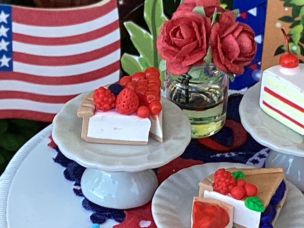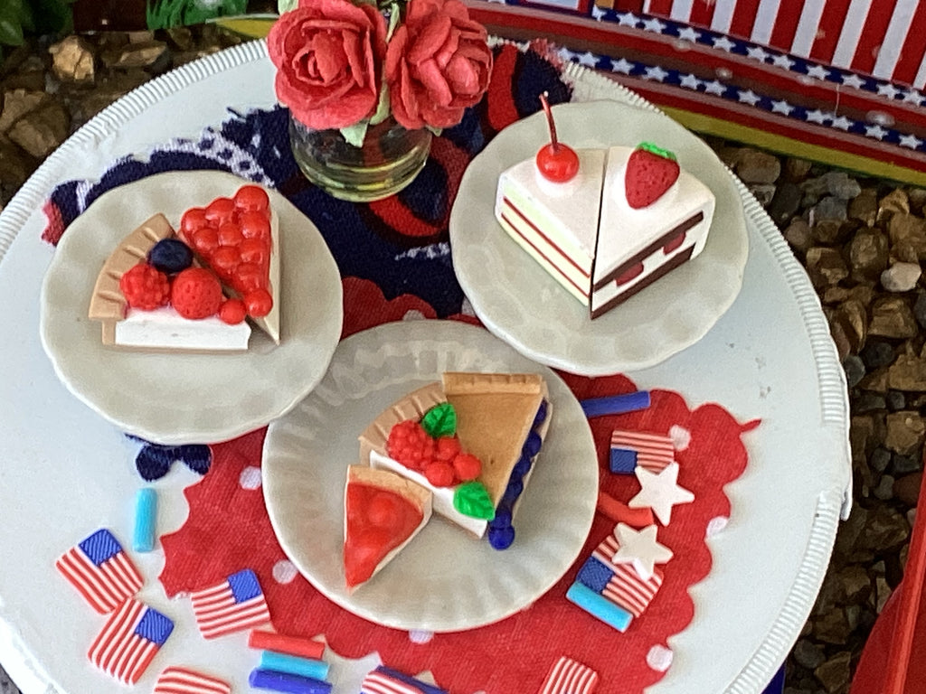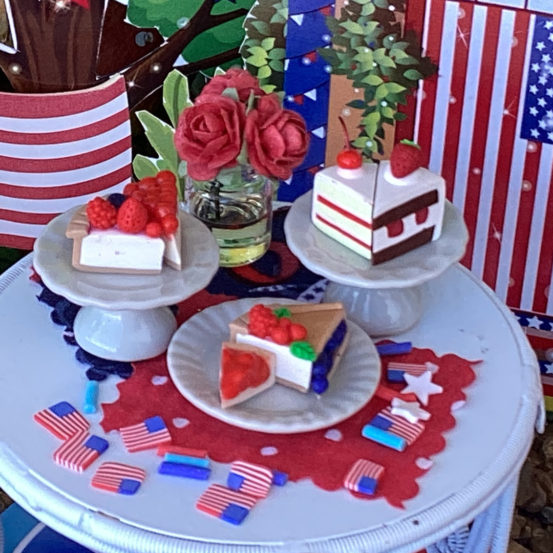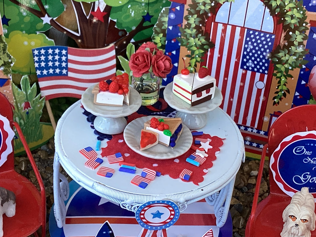 Add a patriotic touch to your fairy garden or dollhouse with our Amazing assorted sweets. These festive miniatures treat will surely uplift any setting with its star-spangled charm. Meticulously painted in vibrant hues of red, white, and blue, they capture the essence of sweet patriotism, transforming your space into a grand celebration.
