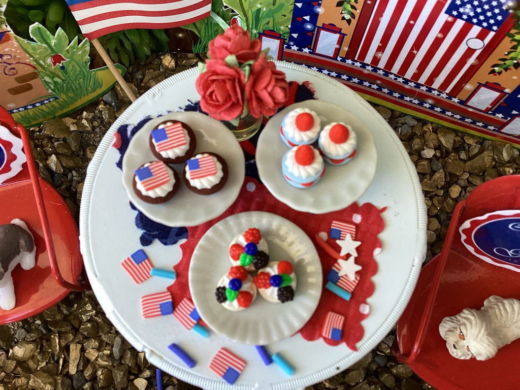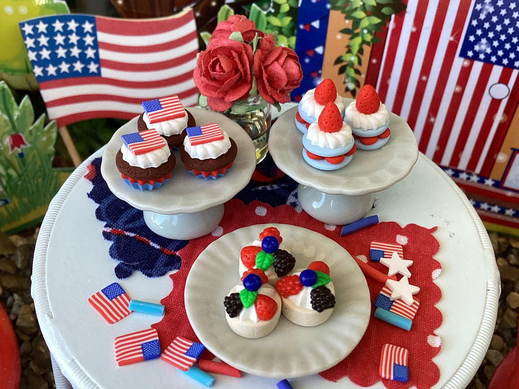 Express your love for the country in the most charming way possible with our Amazing Assorted Sweets. Perfect for fairy gardens and dollhouses, these delightful treats are a feast for the eyes. Laden with star-spangled charm and vibrantly painted in hues of red, white, and blue, these sweets are not just confectionery, they embody the spirit of patriotism. Each piece is meticulously crafted to transform any setting into a grand celebration. Let your decor speak volumes about your love for the country with our Amazing Assorted Sweets.