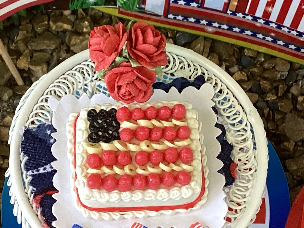 A Yummy Strawberry~Bannana~Blueberry USA Flag Cake 1:12