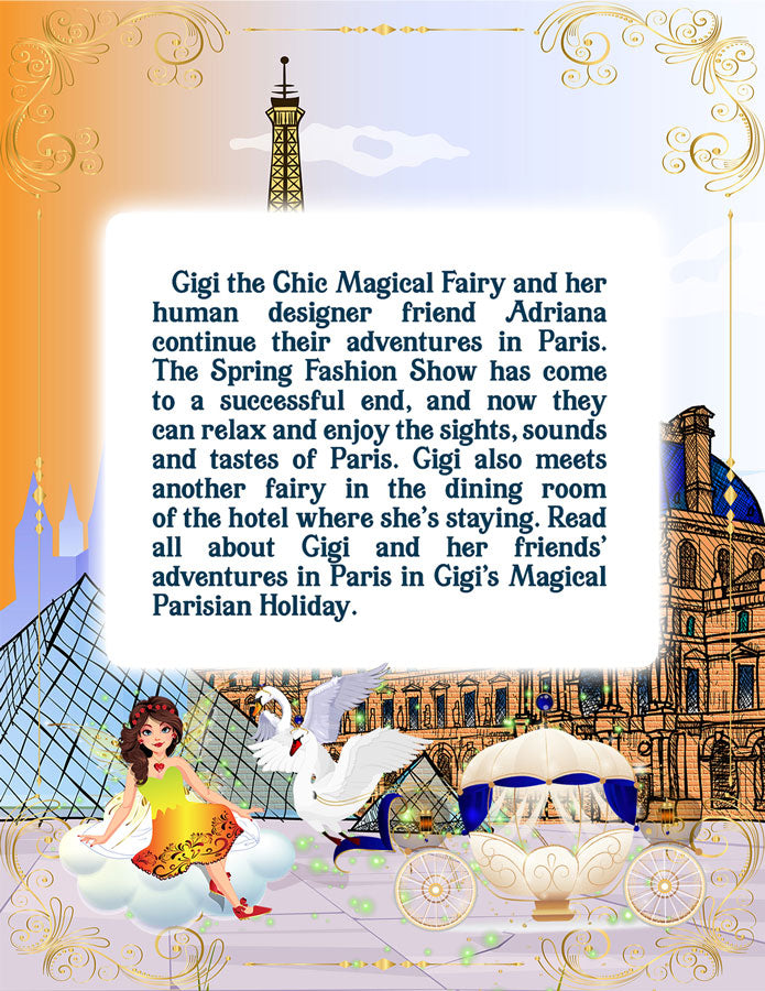 Join me in Paris. I have time for a short holiday before returning home to the attic of the fashion house in California with Adriana. I am going to be exploring some of Paris’s magical landmarks like The Louvre Museum and the Eiffel Tower. I’m also going to do some window shopping and enjoy the amazing food that Paris has to offer. I hope that you’ll join me on this magical adventure in the new book that my friend Teelie Turner has written about me.