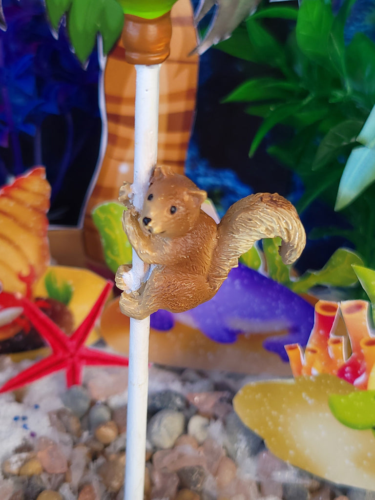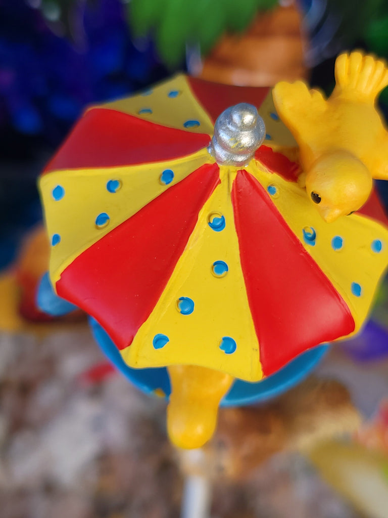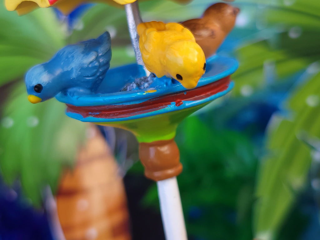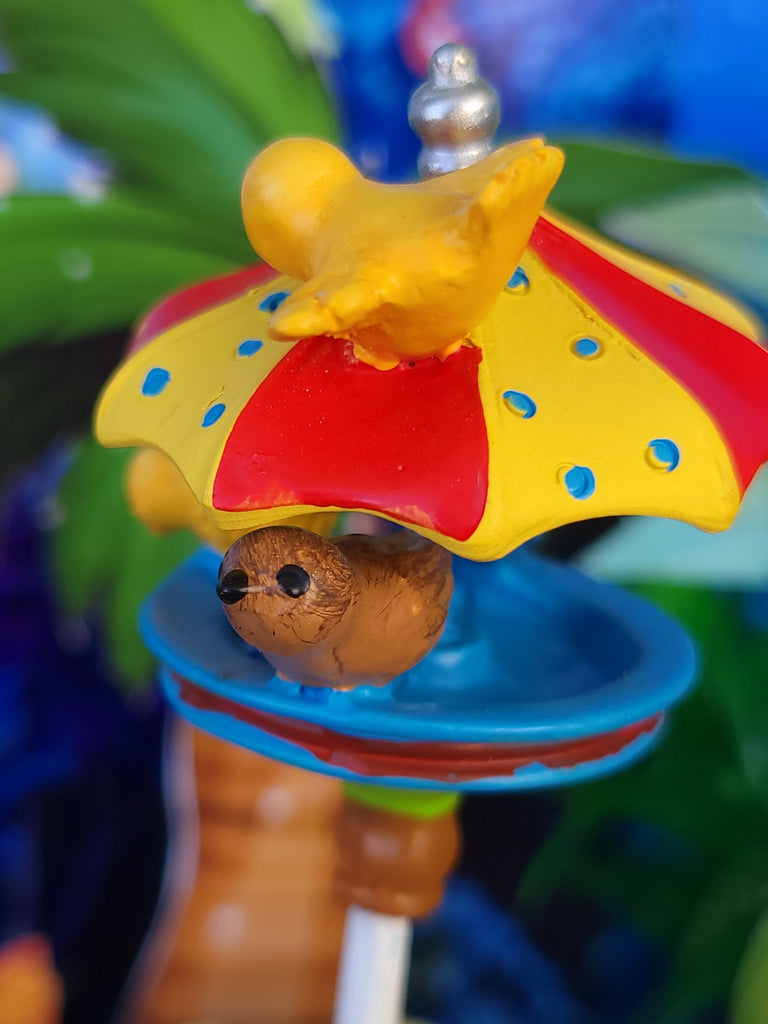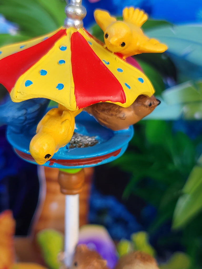 This Mermaid Bird Beach Umbrella Feeder is a great addition to your miniature garden. The unique design includes a blue bird, brown bird, yellow bird and a sweet squirrel crawling up the pole -all crafted with attention to detail. Enjoy watching the birds as they come to feed and bring life to your special space.