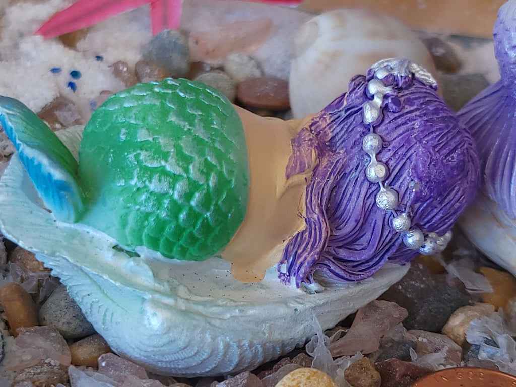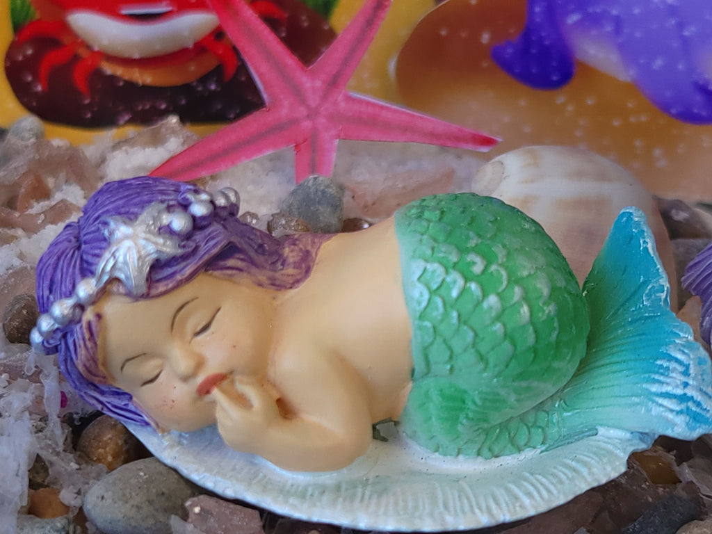 * Green Mermaid Sleeping in a Shell-Approximant size: 2.5" Long X 1.5" Tall