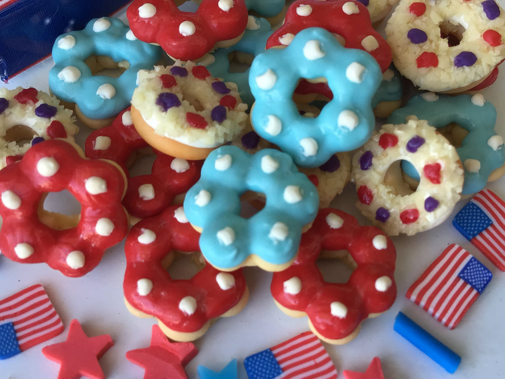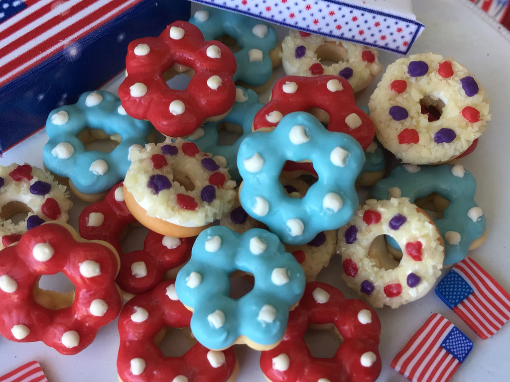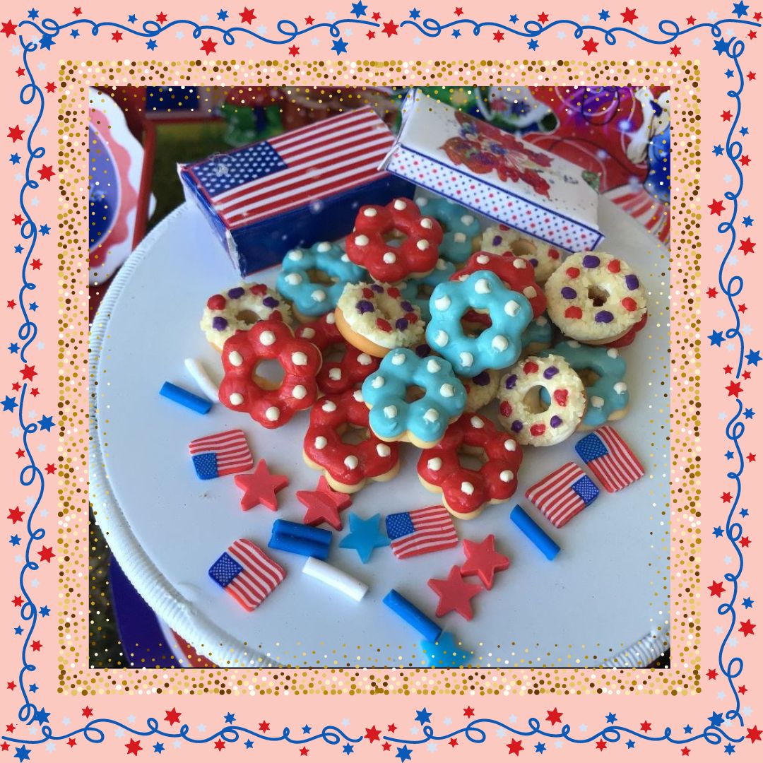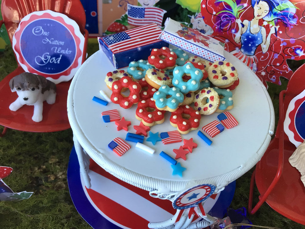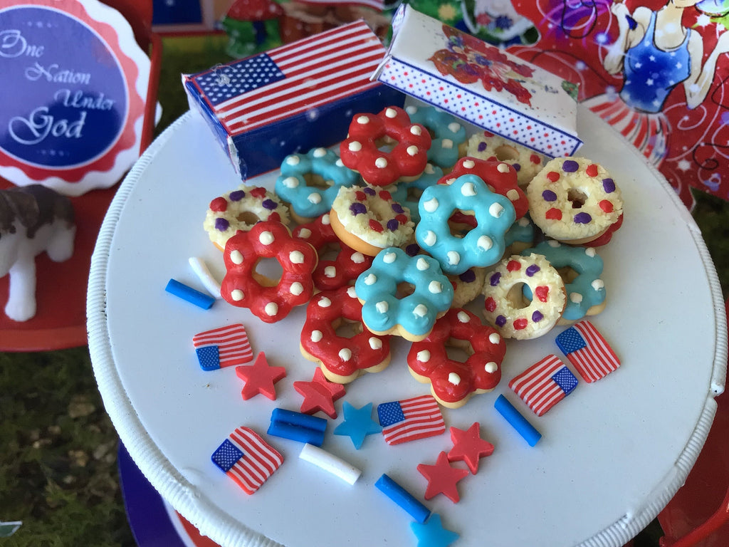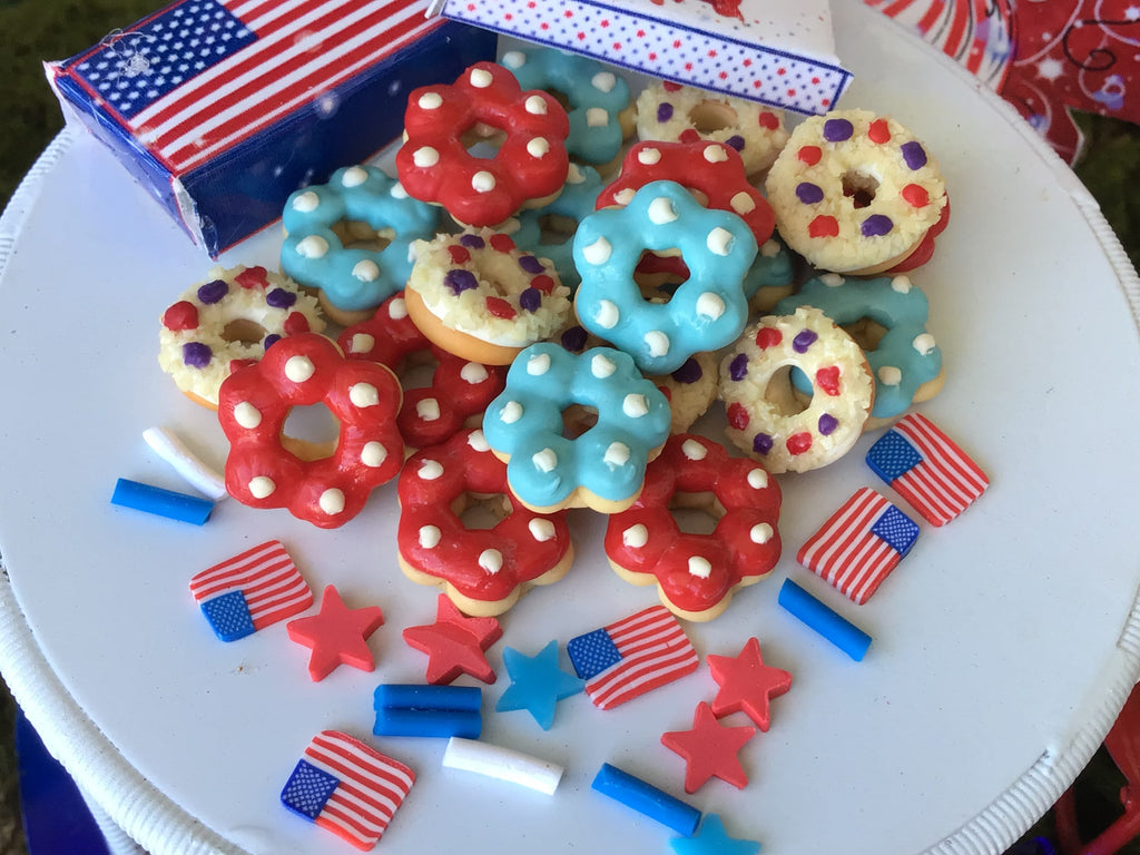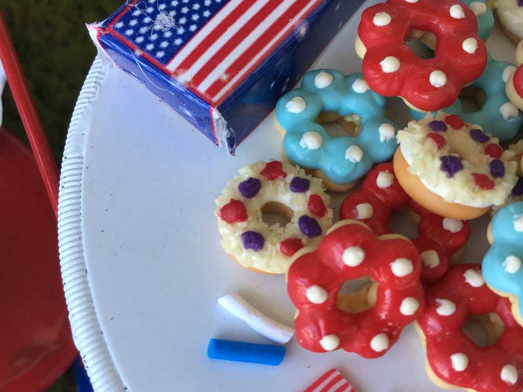 Red, White, And Blue Yummy Donuts, Miniature, Fairy Garden, Dollhouse, 4th of July
