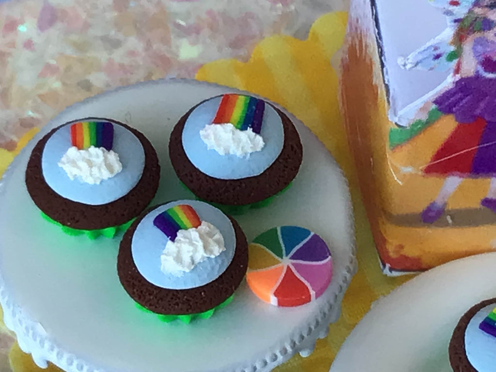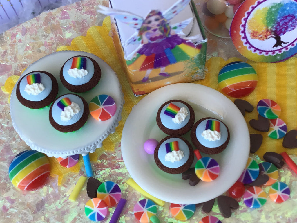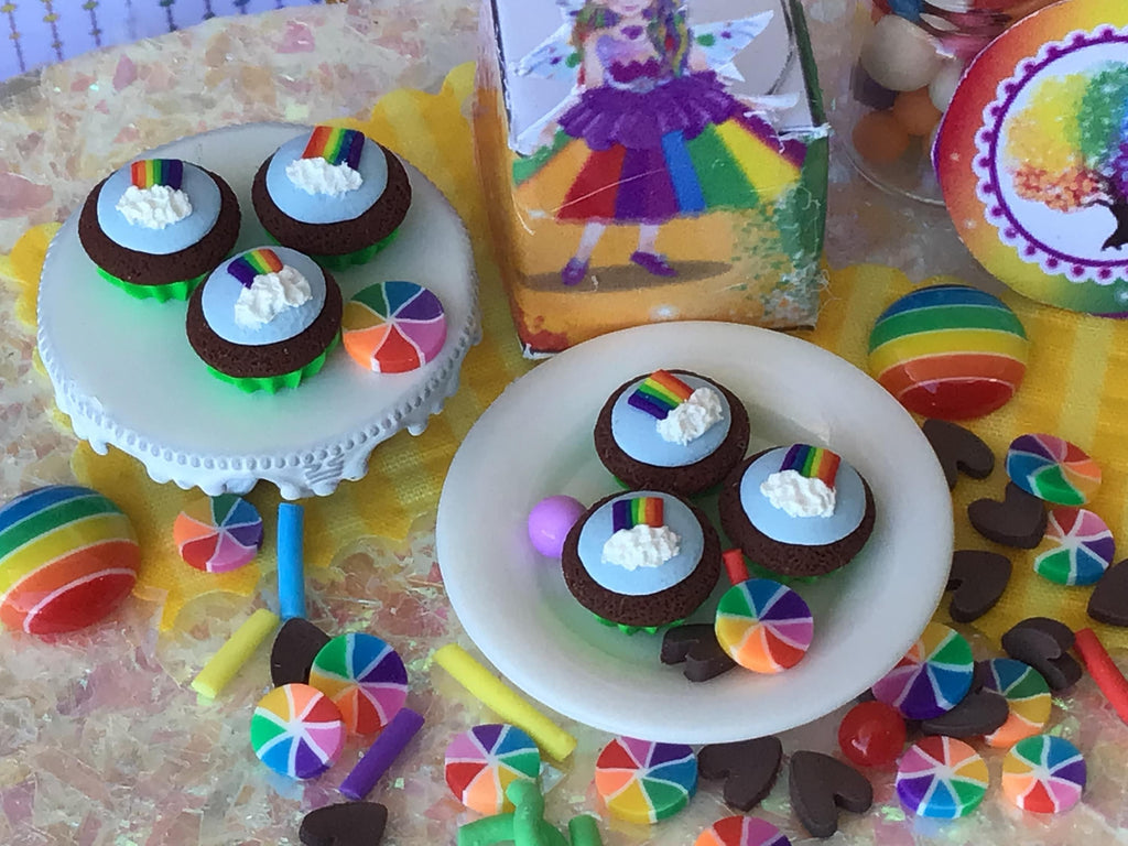 Experience the magic of these Tiny Adorable Rainbow Cupcakes. Perfect for fairy gardens and dollhouses, these cupcakes feature a whimsical rainbow coming out of a cloud design. Add a bit of charm to your miniature world.🦄❤️🦄💛